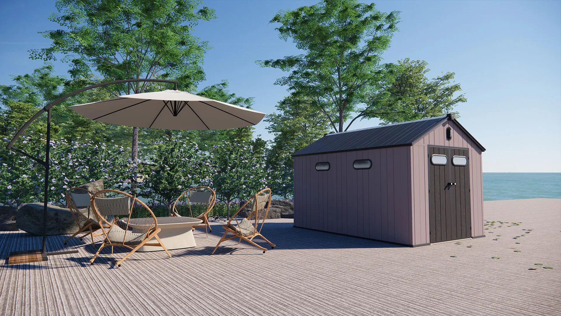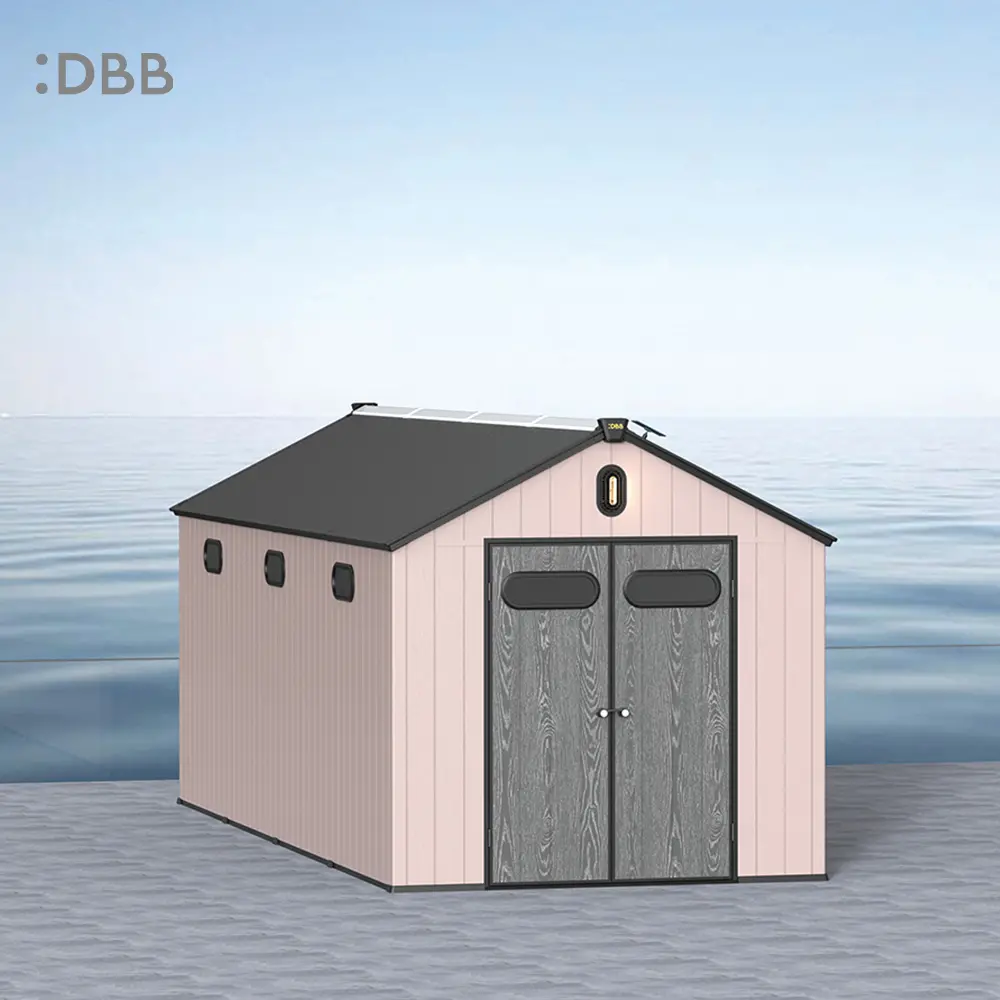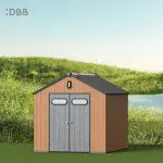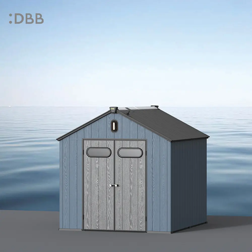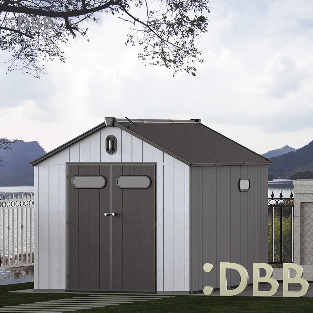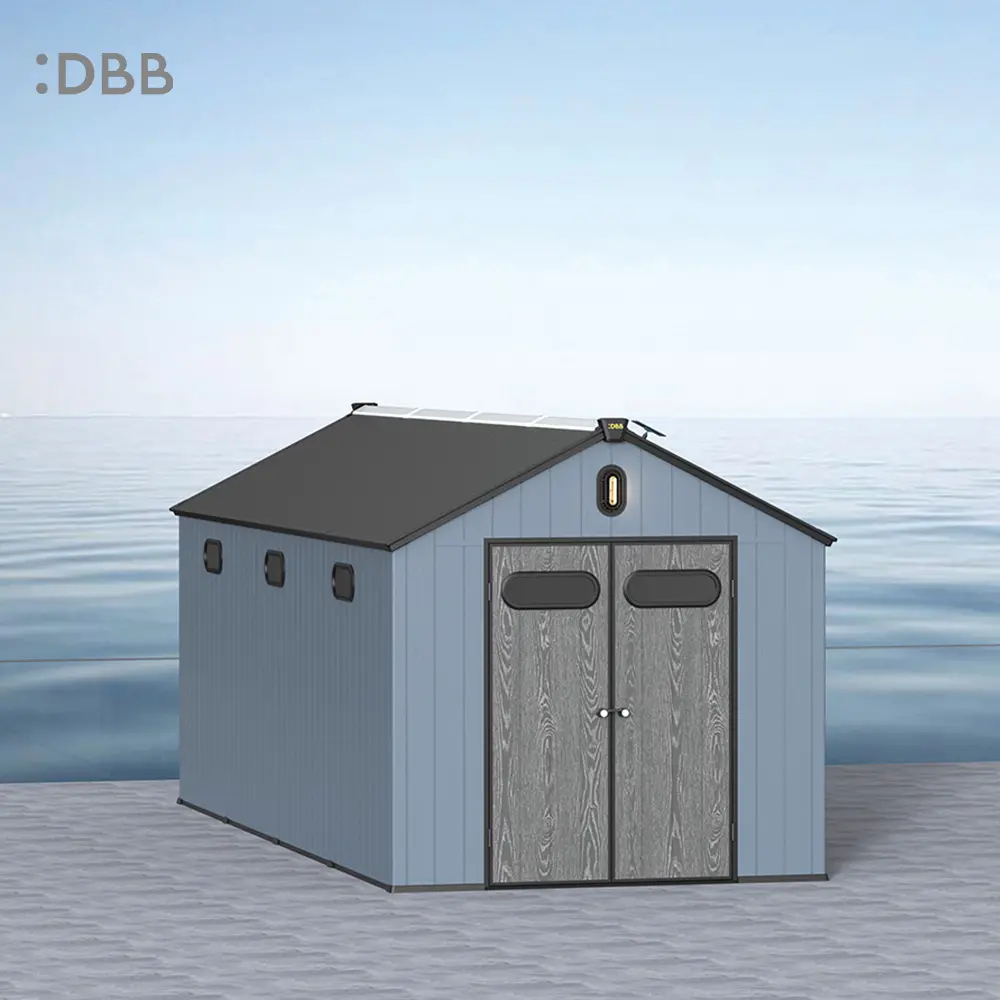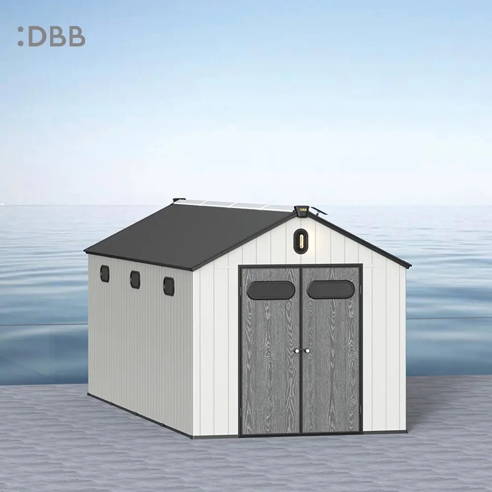 Tired of a messy yard or garden? You need a outdoor garden storage shed of DiBiBi, which is the result of the perfect combination of modern design and practicality, enough to meet your needs. The surface wood grain is beautiful and fresh, large storage space for lawn mowers, pool toys, bicycles, and other gardening tools. Skylight at the top allows in natural light, it also has an active ventilation system and lighting system. The combination of steel frame construction and thick resin panels allows the roof to withstand heavy snow loads. Not afraid of wind, rain and UV rays, resist rust, for your belongings to bring a full range of protection.