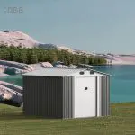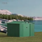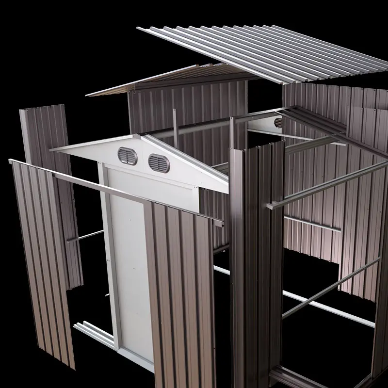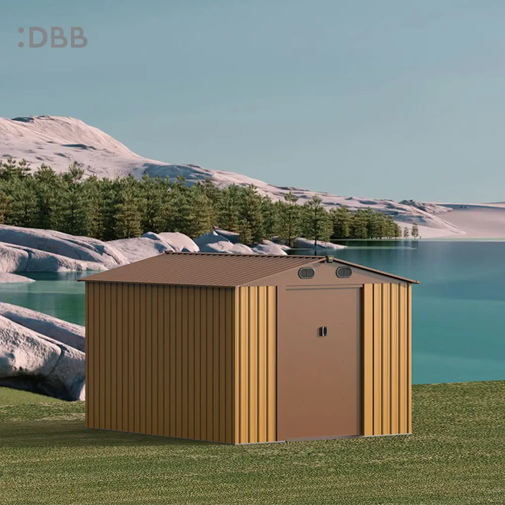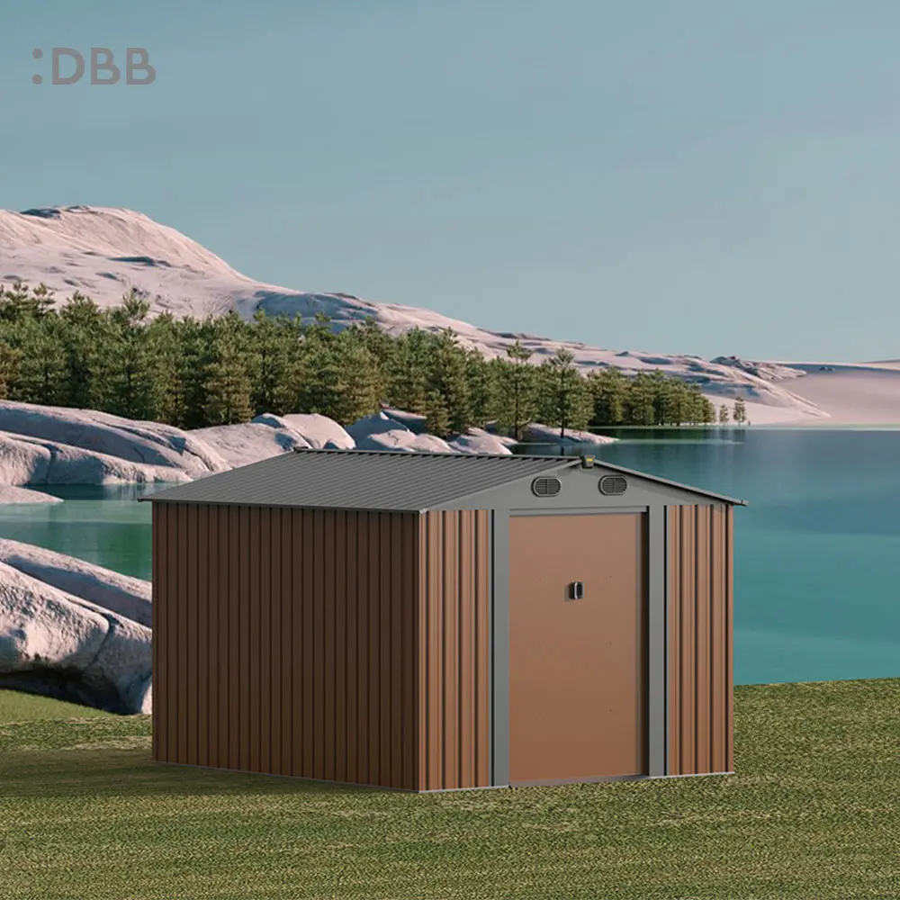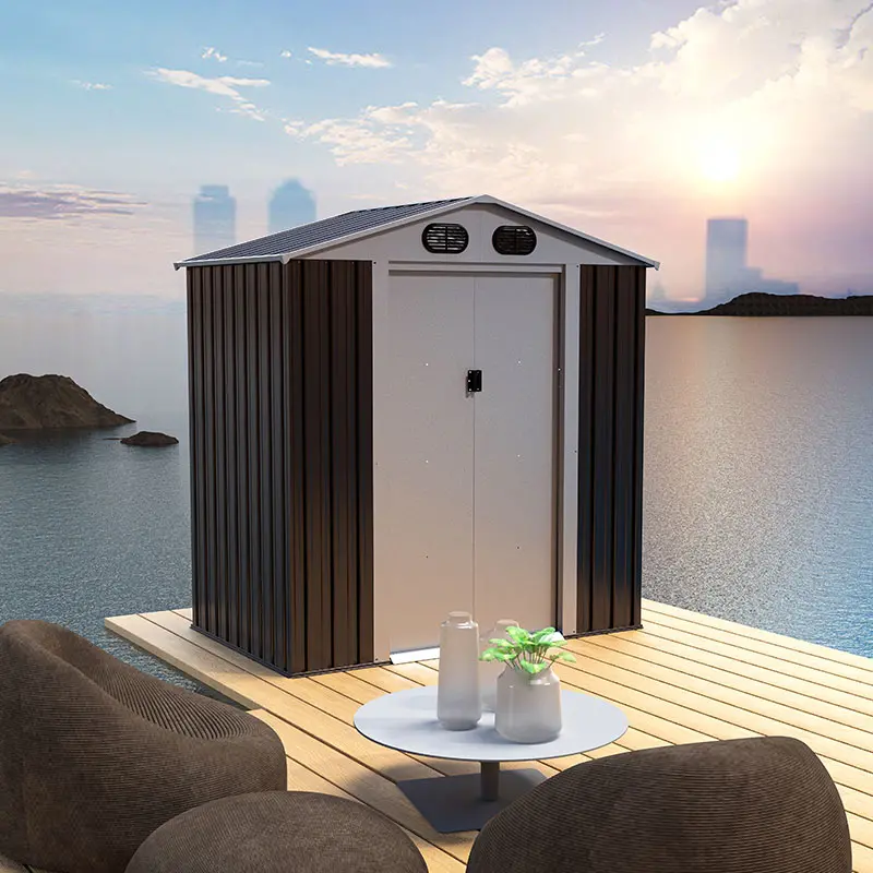 The metal garden shed with modern design style complements the surrounding buildings, which can solve many problems for you while being durable.