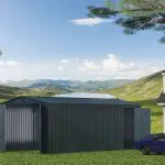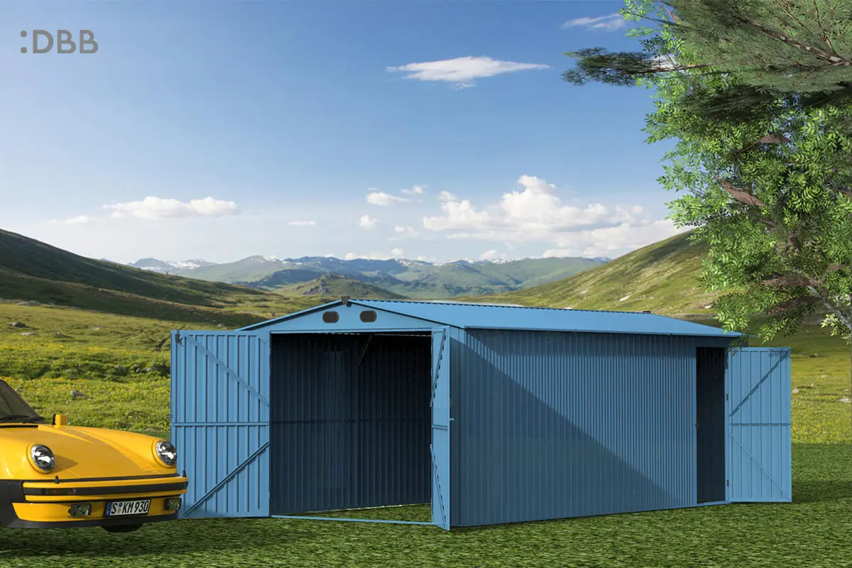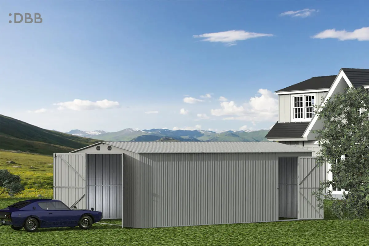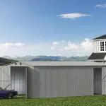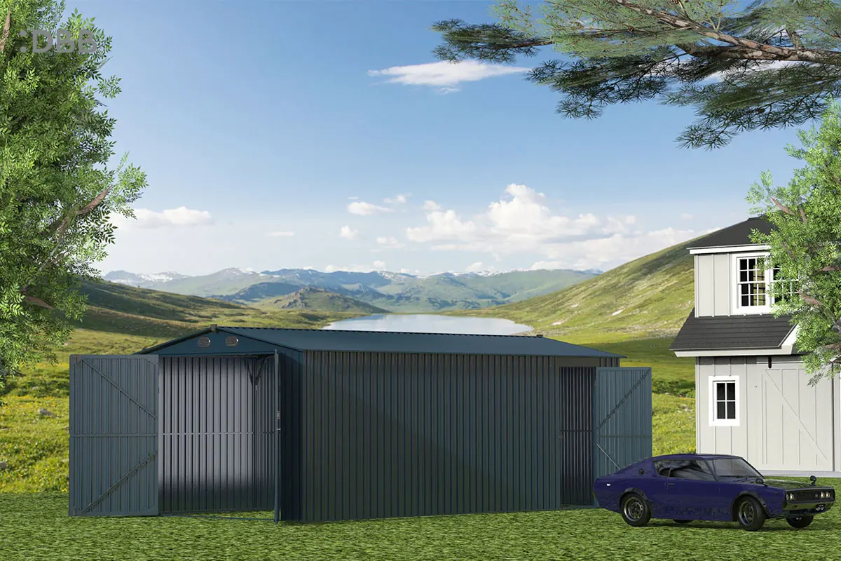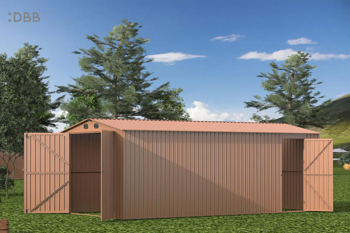 The metal garden shed with modern design style complements the surrounding buildings, which can solve many problems for you while being durable.