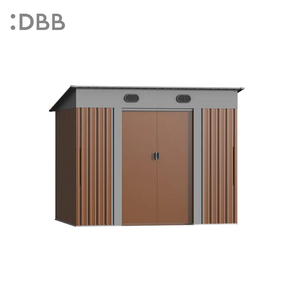 The metal garden shed with modern design style complements the surrounding buildings, which can solve many problems for you while being durable.